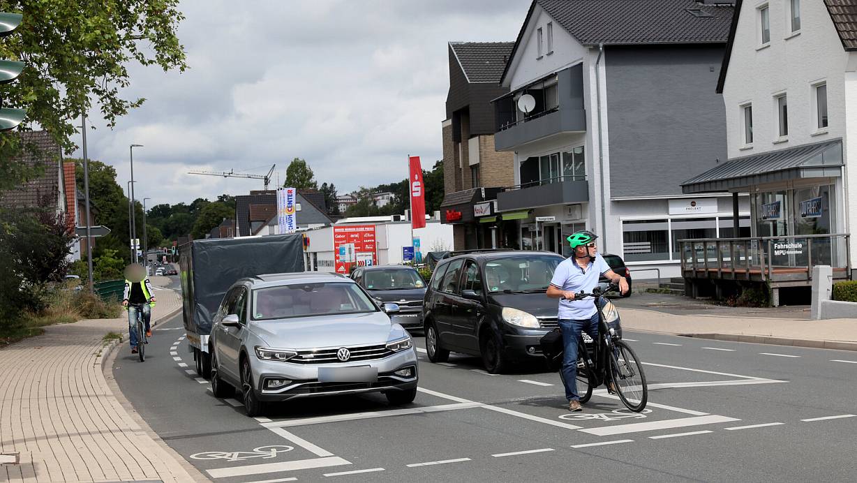 Die Linksabbiegerspur für Radfahrer zwischen Autos ist manchem Radler nicht geheuer. | © Frank-Michael Kiel-Steinkamp
