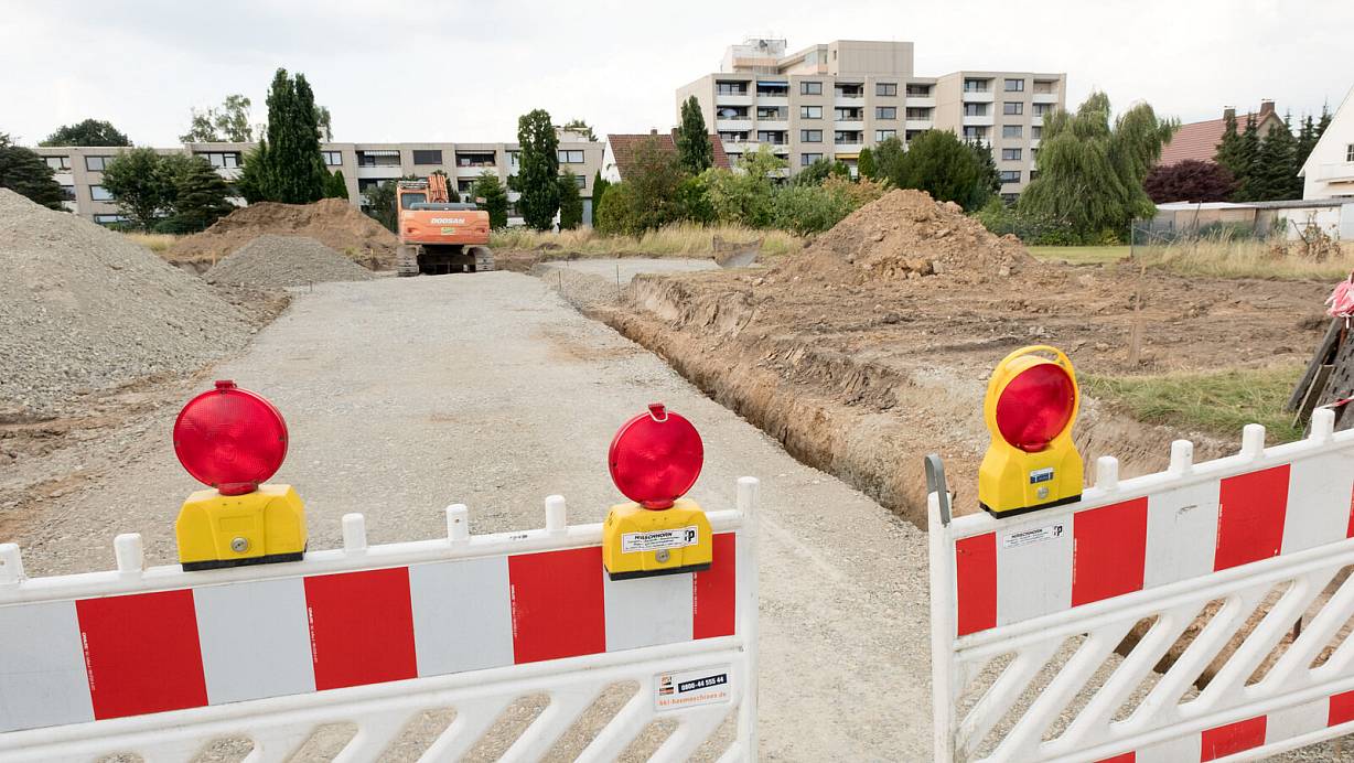Das neue Wohnbaugebiet wird derzeit über den Küferweg erschlossen. Im Hintergrund sind die Hochhäuser der Wohnoase zu sehen, die ihre Zufahrt über den Otternbuschweg haben. | © Ralf Bittner