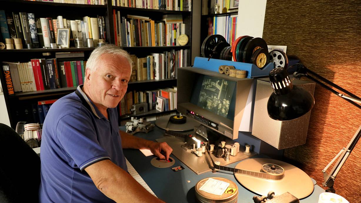 Frank Becker spielt hier Anfang Juli seinen Teil des Herford-Films auf seinem professionellen Schneidetisch ab. | © Frank-Michael Kiel-Steinkamp