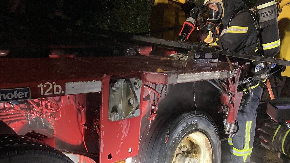 Nach einem Reifenplatzer brannte es an einem Schwertransporter auf der Autobahn 2. Die Freiwillige Feuerwehr Bad Salzuflen hat den Brand schnell unter Kontrolle gehabt. Foto: Feuerwehr Bad Salzuflen | © Feuerwehr Bad Salzuflen