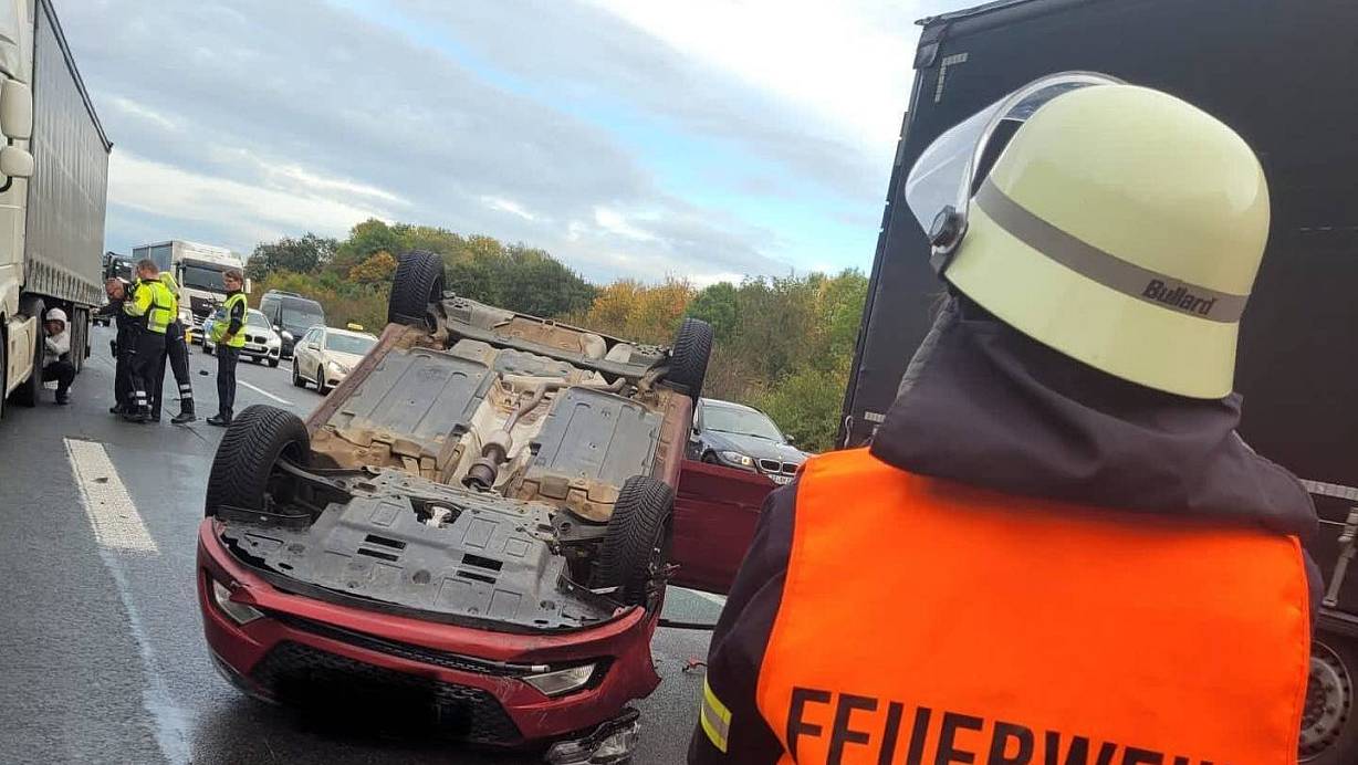 Zur selben Zeit alarmierte die Leitstelle Herford die Einheiten Bonneberg und Vlotho. Auf der A2 war ein Pkw mit einem Lkw kollidiert. Das Auto hatte sich überschlagen und landete nach dem Unfall auf dem Dach. Der Fahrer konnte das Fahrzeug selbständig verlassen und wurde durch den Rettungsdienst versorgt. Die Feuerwehr nahm auslaufende Betriebsmittel auf und sicherte die Unfallstelle ab.
