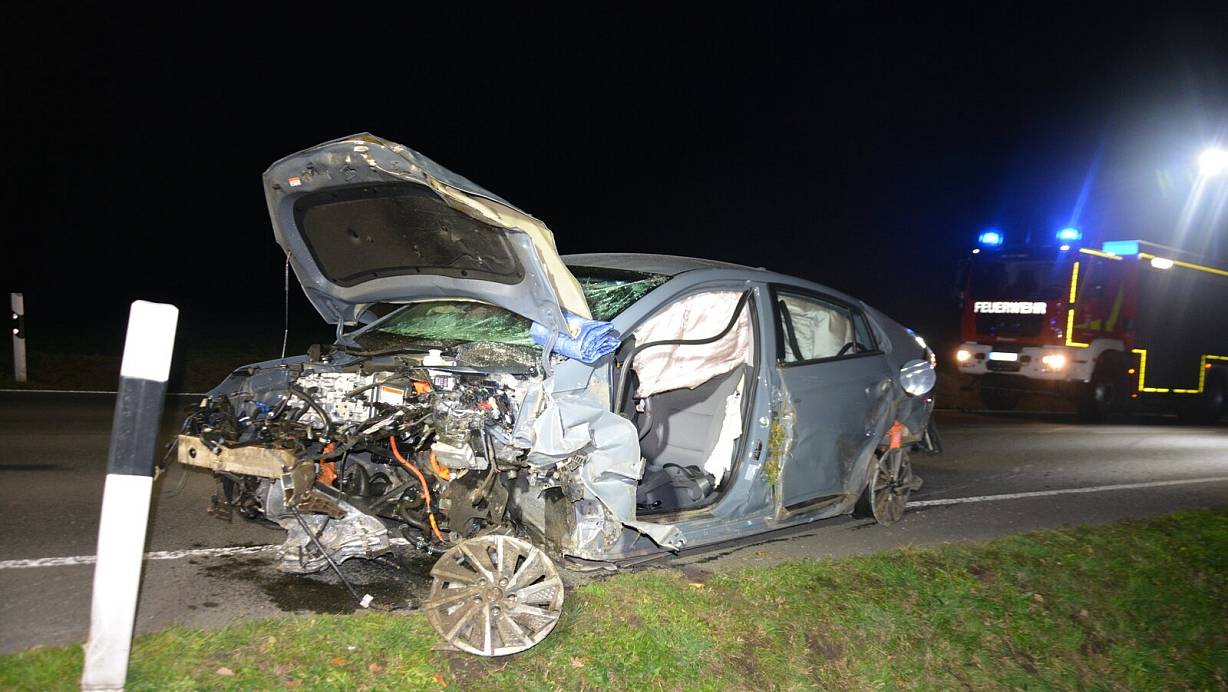 Dieser Hyundai eines 38-jährigen Herforders ist völlig zerstört. Alle Airbags haben ausgelöst. | © Polizei Herford
