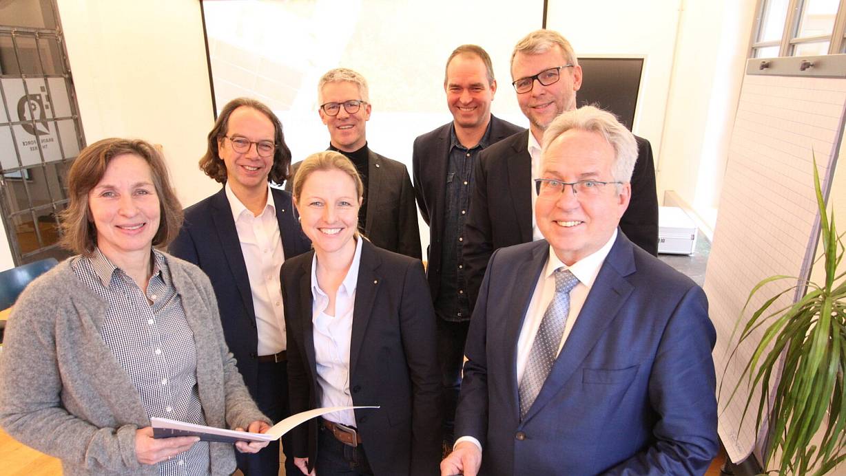 Stellten die Ergebnisse der Umfrage vor: Birgit Schnieder (v. l.), Marco Rieso (Referatsleiter IHK), Alxandra Altmann, Jan Ottensmeyer (IHK-Industrieausschuss), Guido Möhlmann (IHK-Vollversammlung), Götz Dörmann und Jürgen Müller. | © Björn Kenter