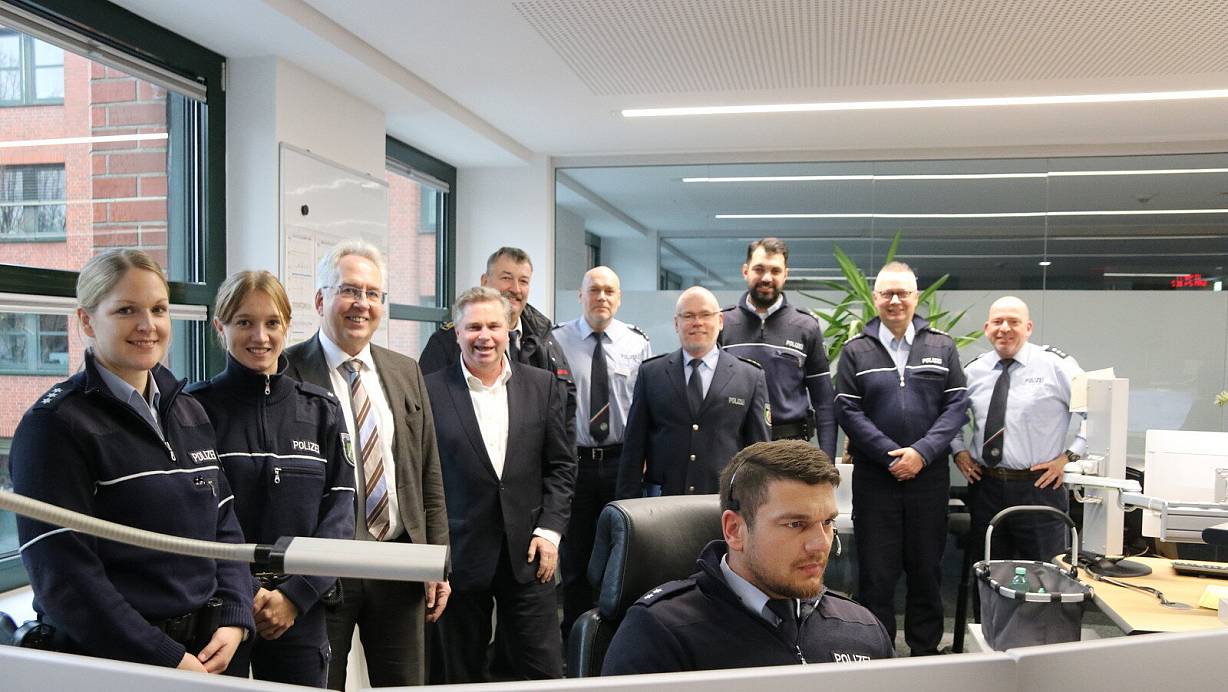 Die Einsatzleitstelle der Polizei Herford: hier laufen alle Notrufe ein. Heute durfte dem Einsatzleiter bei der Arbeit ausnahmsweise über die Schulter geschaut werden. | © Claus Frickemeier