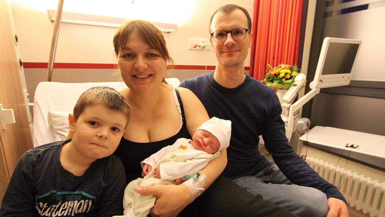 Bruder Milan, Mutter Olesja und Vater Fabian Martinovic freuen sich über die Ankunft des kleinen Eliah. | © Björn Kenter
