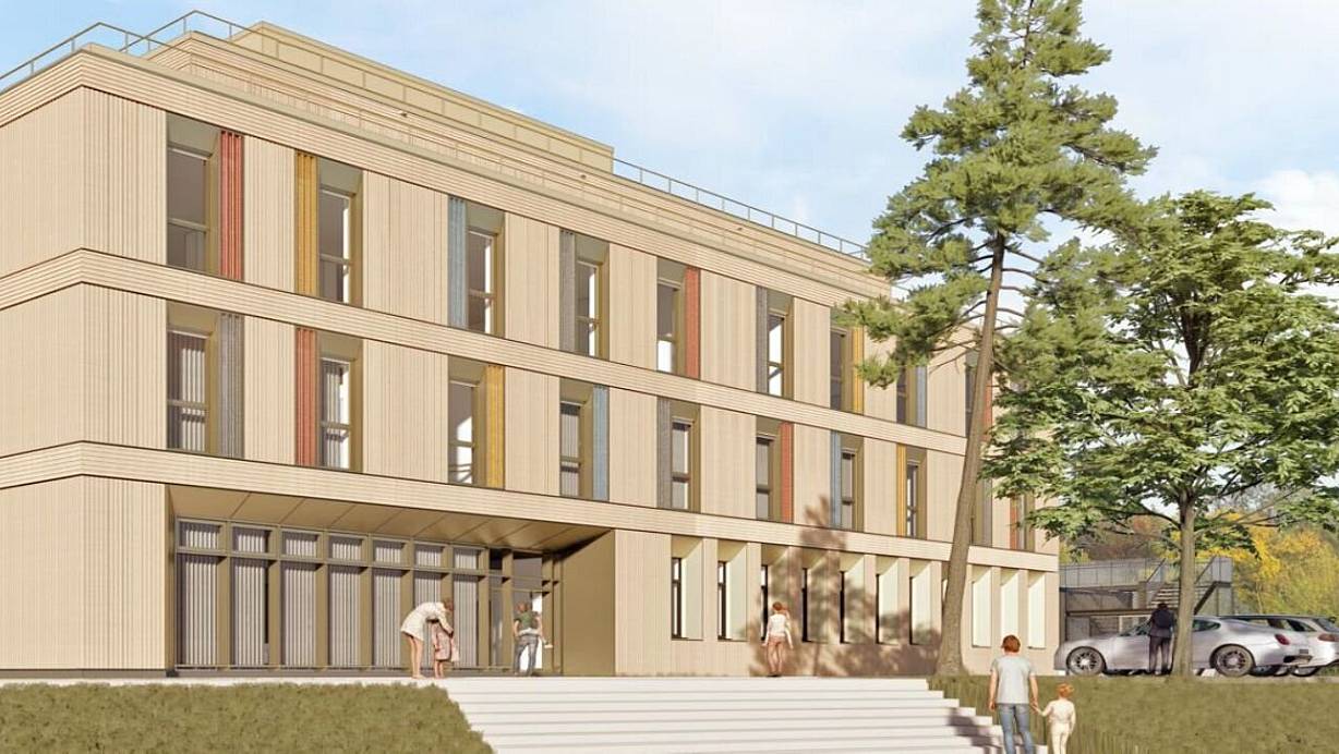 So soll die Kinderklinik aussehen. Aus Kostengründen sind unter anderem die bunten Träger verschwunden, die das Gebäude einmal bekommen sollte. | © HDR Germany
