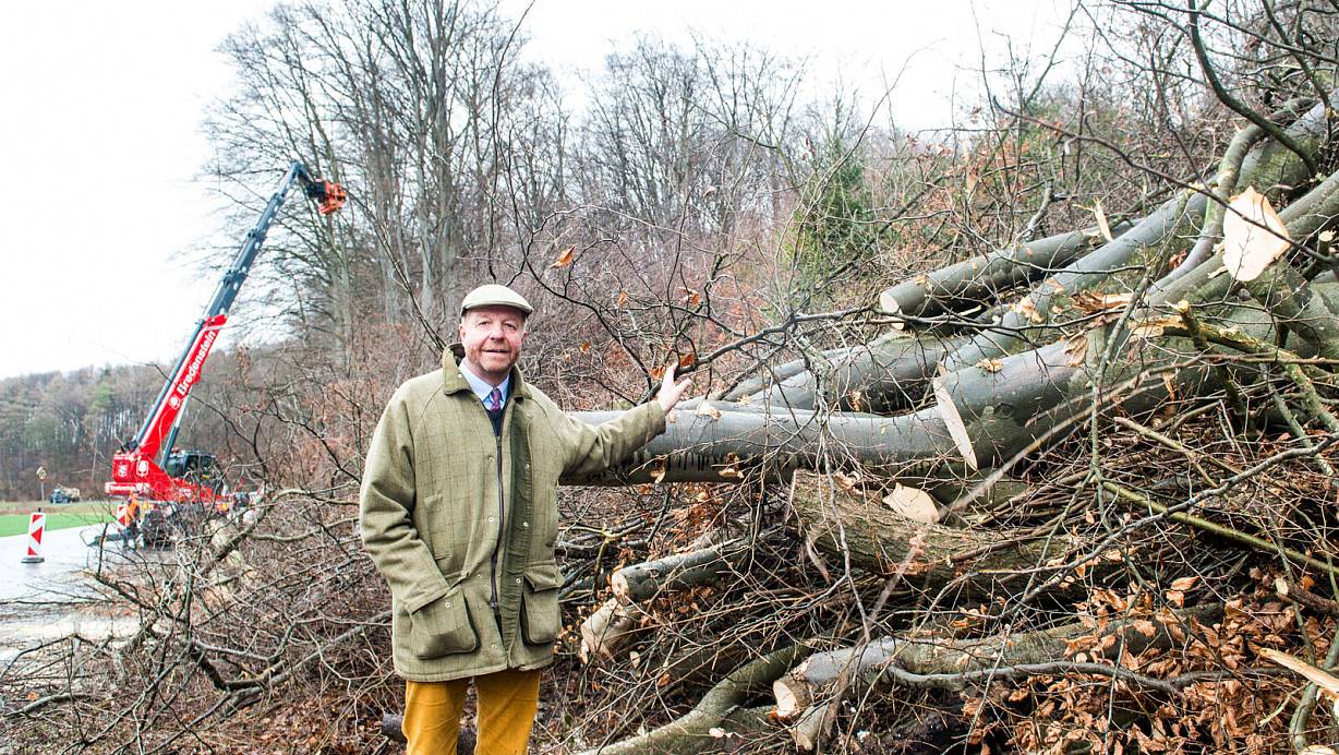 Wegen einer Verkehrsgefährdung durch vertrocknete Buchen entlang der Löhner Straße muss Eigentümer Caspar-Florens von Consbruch einen Teil seiner Bäume fällen lassen. Das geht nicht ohne Straßensperrung ab.
