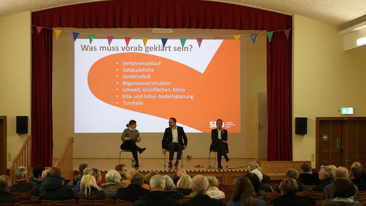 Rund 50 Zuhörer, die meisten mit ganz klaren Forderungen an die Stadt, nehmen am Quartiersgespräch des SPD-Ortvereins zur künftigen Entwicklung des Areals teil.