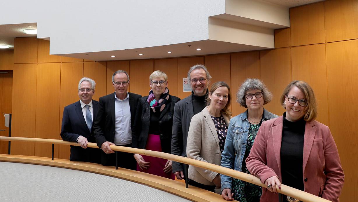Kathrin Clausen (rechts) ist neue Schulrätin für Grundschulen im Kreis Herford. An ihrer Einführung nahmen teil (v. l.): Landrat Jürgen Müller, Michael Uhlich und Iris Hohberg von der Bezirksregierung, Schulrat Eduard Rammert, Schulrätin Annette Mühlenmeier und Schulrätin Gabriele Ortner. | © Frank-Michael Kiel-Steinkamp