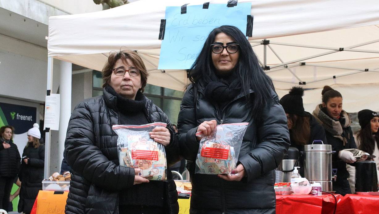 Zübeyde Polat und Sibel Gümüs (v.l.) haben die Spendenaktion auf dem Linnenbauerplatz ins Leben gerufen und freuen sich über mehrere Tausend Euro, die an Spendengeldern eingenommen wurden. | © Claus Frickemeier
