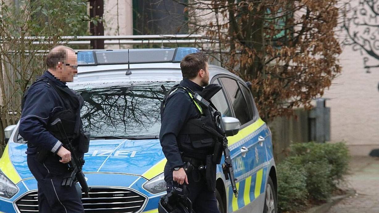 Polizeibeamte mit schwerer Bewaffnung sicherten das Schulgebäude. | © Claus Frickemeier