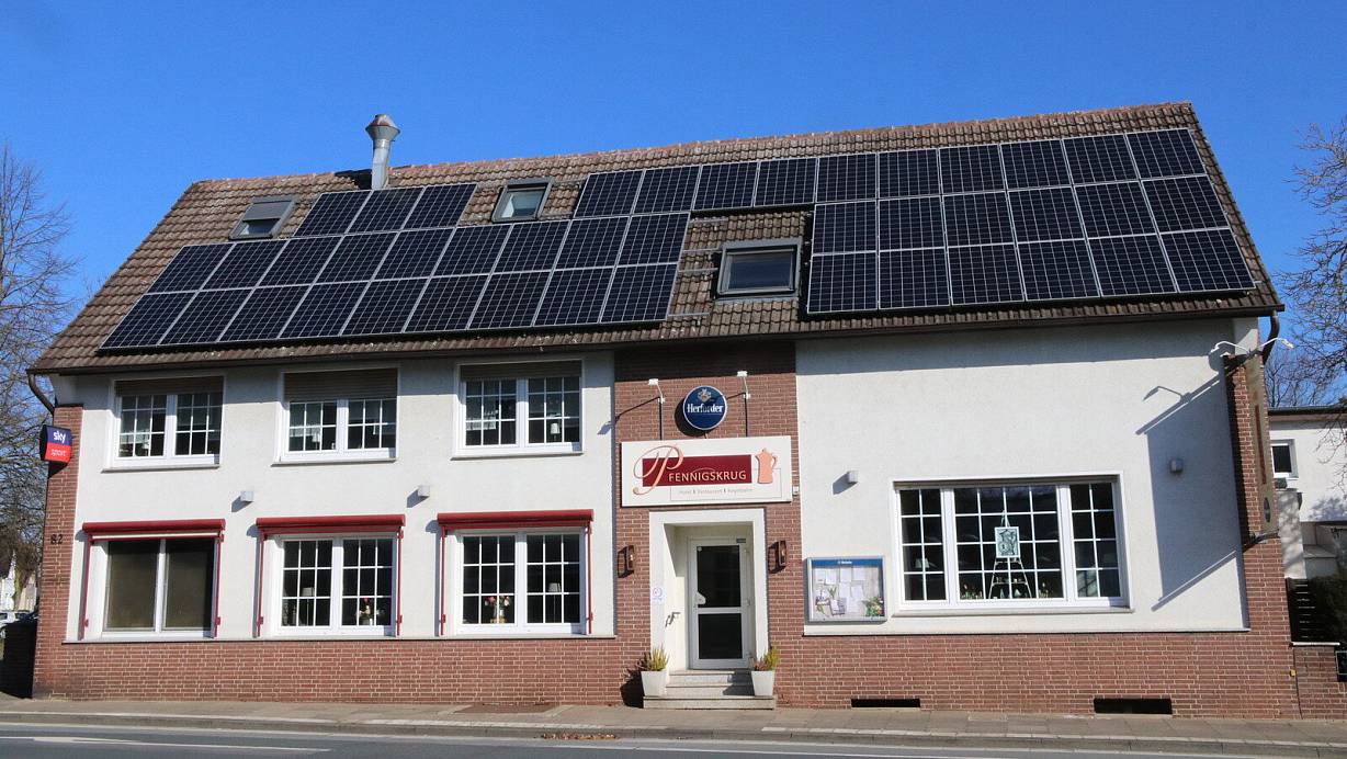 Eine Photovoltaik-Anlage auf dem Dach alleine reicht für die begehrte Auszeichnung nicht aus. Der Pfennigskrug an der Engerstraße kann sein Umweltengagement aber an vielen Stellen nachweisen. | © Claus Frickemeier