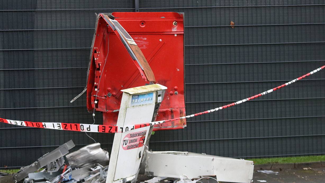 Der Zigaretten-Automat wurde durch die Sprengung in Teile gerissen - zwei mutmaßlichen Tätern gelingt die Flucht.