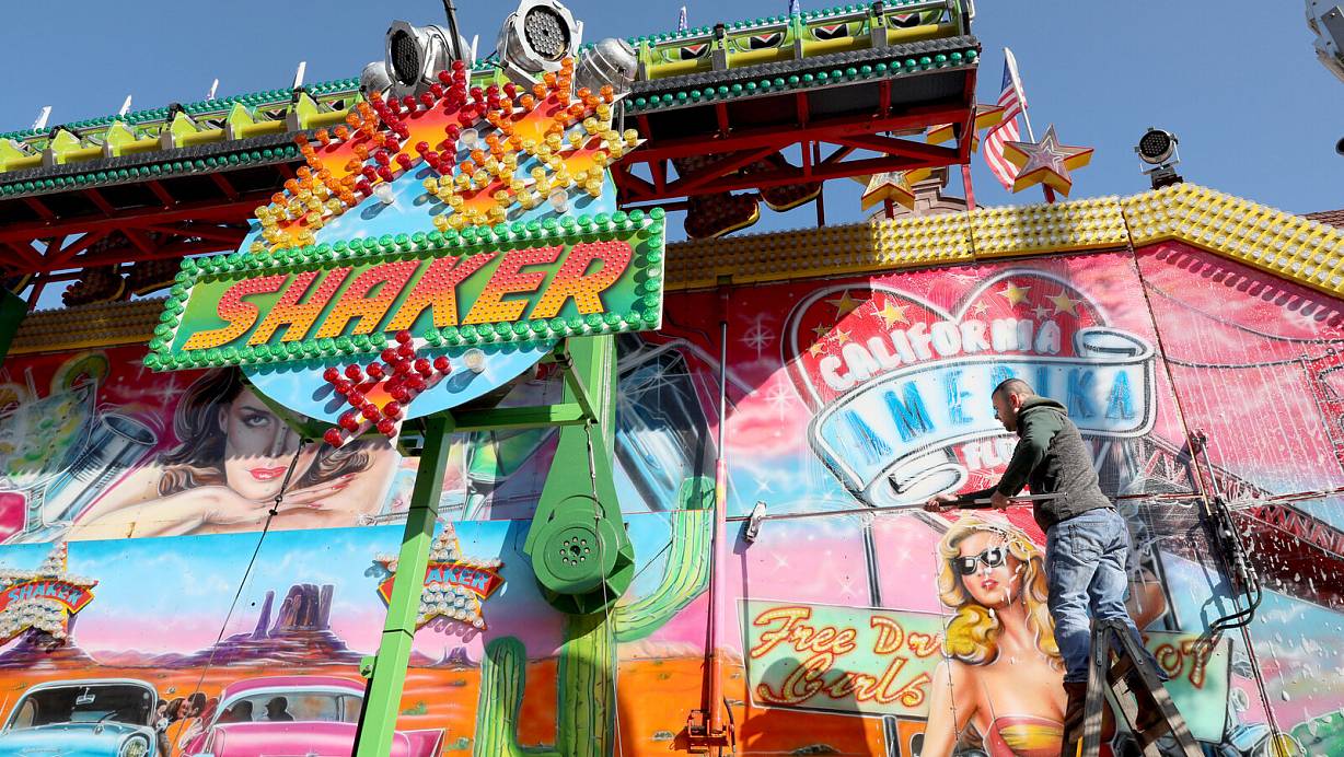 Das Fahrgeschäft "Shaker" wird auf Hochglanz gemacht. Es glänzt im Stil eines Amerika der 60er Jahre. | © Frank-Michael Kiel-Steinkamp