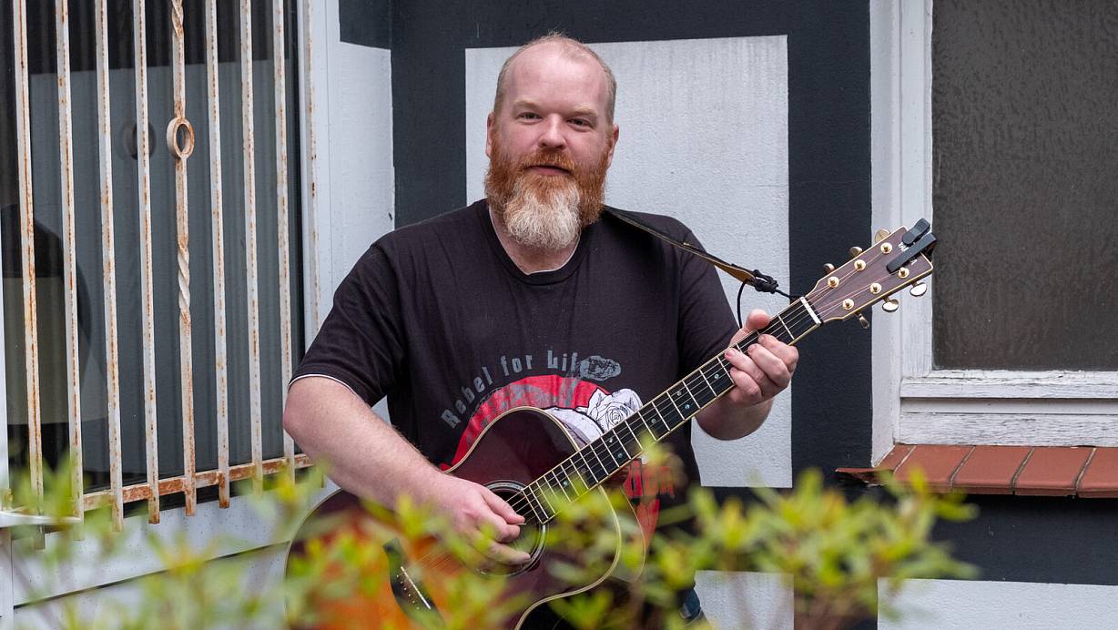 André Deininger stimmt sich im Wintergarten auf seinen Auftritt beim Runrig-Stammtisch im Alt Hiddenhausen ein. Viele Songs der schottischen Folk-Rock-Band kennt er aber auswendig. | © Ralf Bittner