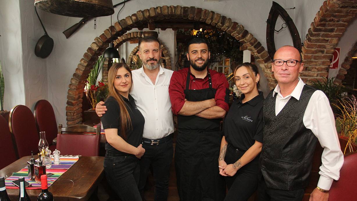Das "La Mirage" Team: Die Gastgeber Dilan Almaz und Abdullah Sayhar, Koch Shaalan Murad und die Mitarbeiter Buket Gürsoy und Bilal Yildiz. | © Ulf Hanke