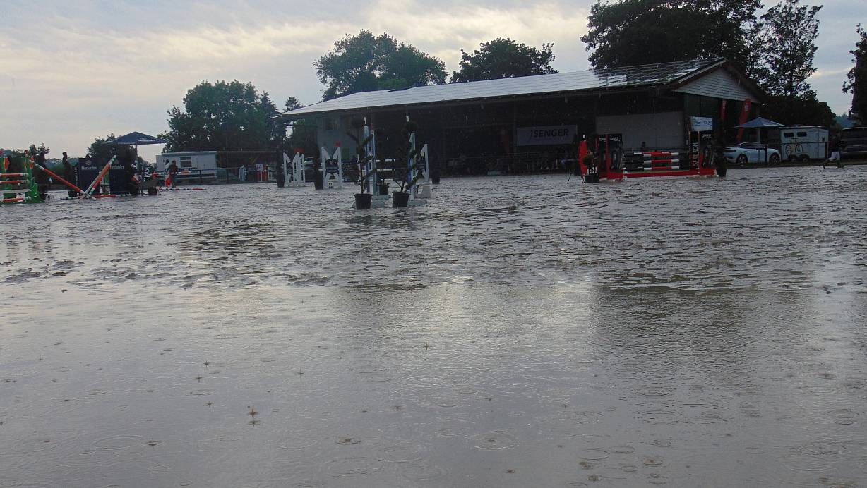 Land unter am Donnerstag: Der Turnierplatz auf dem Hof Meyer zu Hartum. | © Dirk Kröger