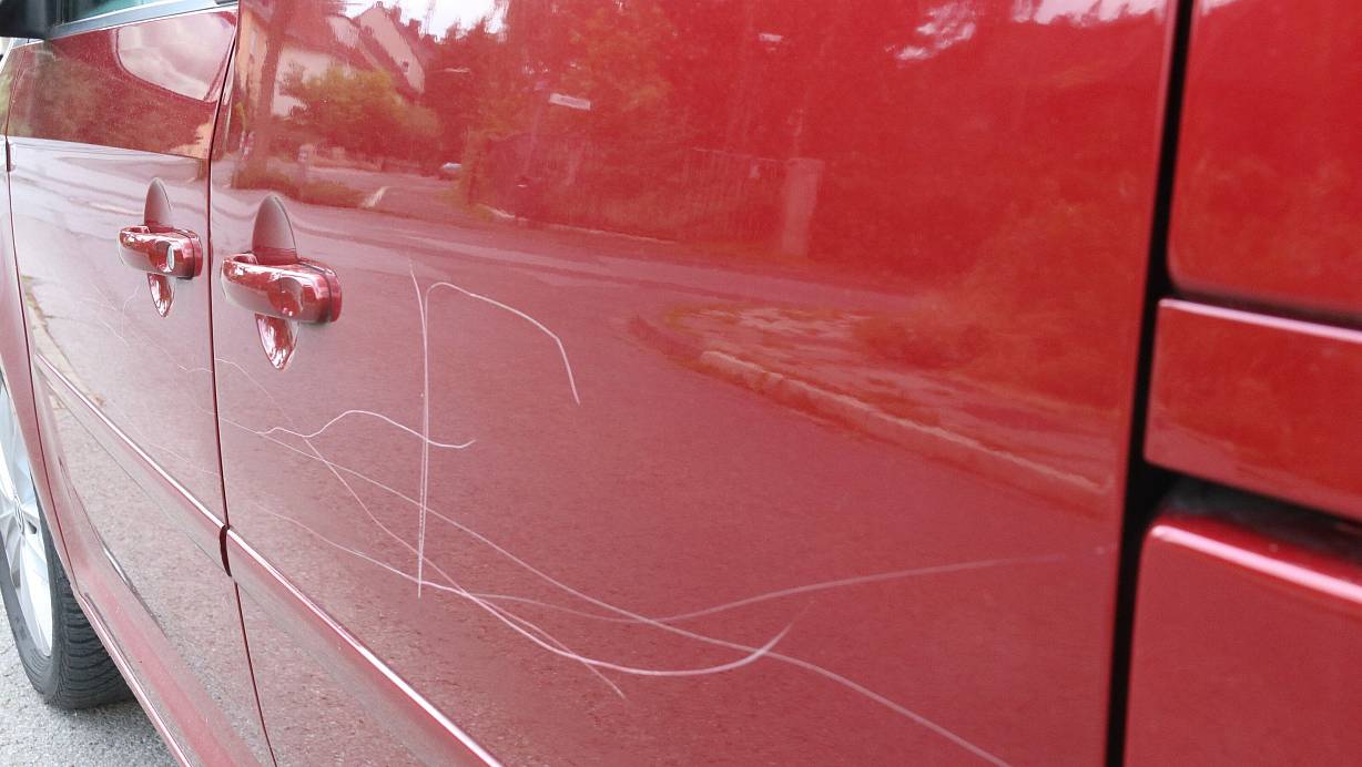 Auch der Lack von diesem Fahrzeug wurde großflächig zerkratzt, der Schaden geht in die Tausende. Als Botschaft wurden die Buchstaben "HdF" hinterlassen - im Netzjargon die Abkürzung für "Halt die Fresse". | © Claus Frickemeier