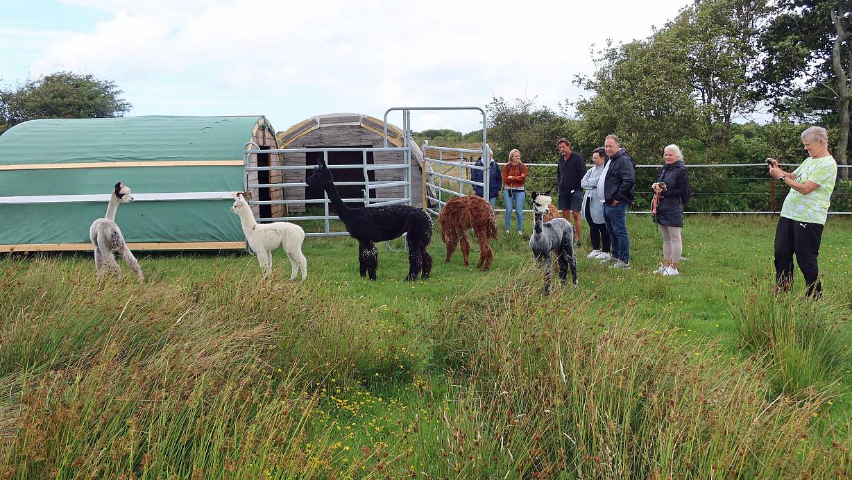 Die Alpakas beginnen, ihre Wiese an der Meierei auf Langeoog zu erkunden. | © Frank-Michael Kiel-Steinkamp