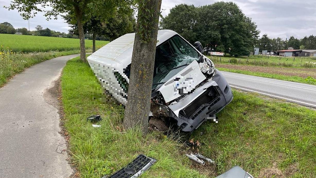 Transporter kommt in Herford von Fahrbahn ab und fährt frontal gegen Baum