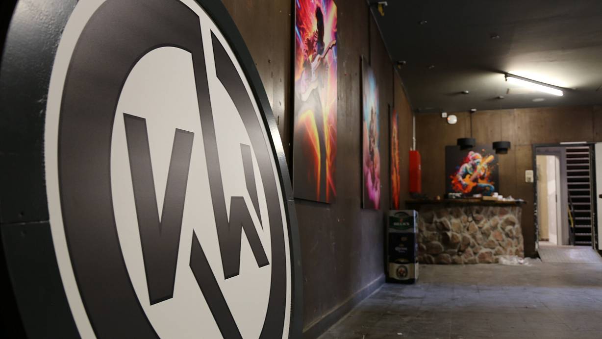 Das Logo des Kulturwerks steht im Eingangsbereich. Aber nur für die Umbauzeit. | © Lena Kley