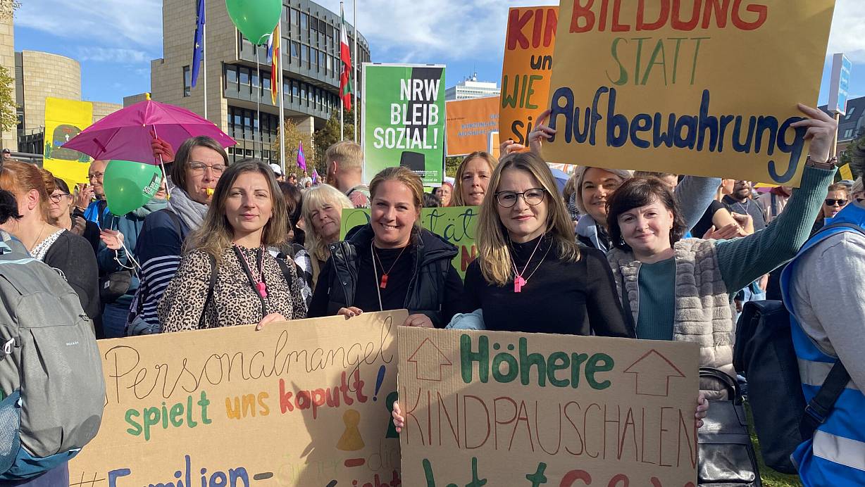 Bei einer Demonstration in Düsseldorf im Oktober haben Mitarbeiter der Kindertagesstätten auf die dramatische Finanz-Situation im Kita-Bereich hingewiesen. | © Kita-Verbund Büren
