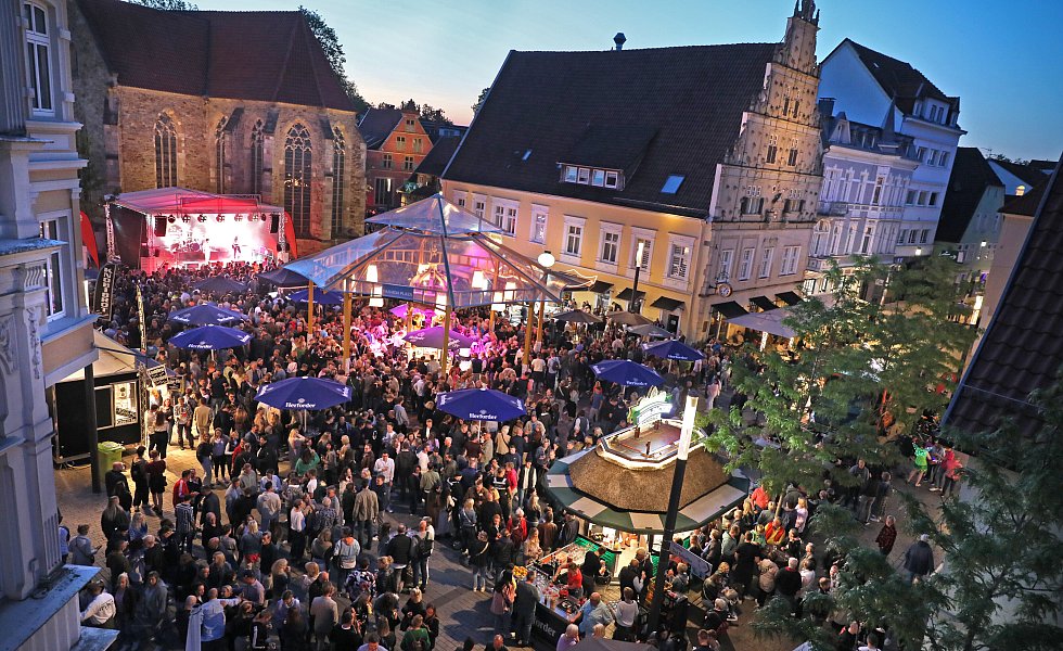 Das 50. Hoeker-Fest startet am Mittwoch, 31. Mai, und wird ein voller Erfolg. Die fünftägige Innenstadtfete lockt insgesamt rund 200.000 Menschen auf die Straßen und Plätze der Stadt, wie die Pro Herford schätzt. Der Neue Markt ist am Samstagabend, 3. Juni, wohl der Hotspot des Hoeker-Festes (Foto). Im Jahr 2024 wird übrigens vom 21. bis zum 24. August gefeiert.