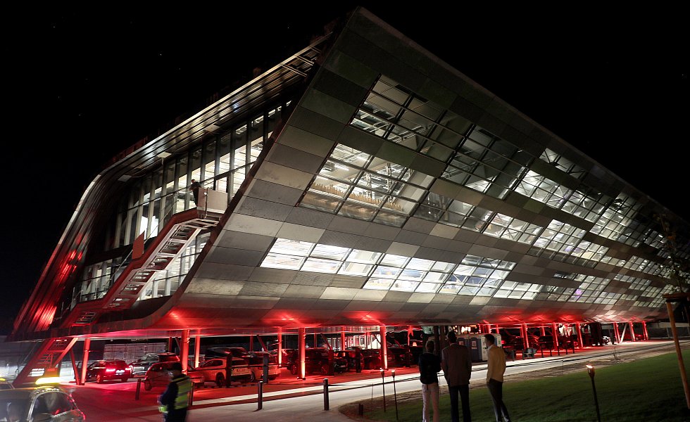 Imposant sieht der Bora Flagship-Store von Lorenz Ateliers, Architekten aus Österreich, auch bei Nacht aus. Im Zuge der Küchenmeile 2023 eröffnet das Unternehmen Bora eines der wohl spektakulärsten Gebäude Herfords. Es liegt direkt an der Bundesstraße, auf der Fläche, auf der einst das Sporthotel – 15 Jahre als Ruine – stand.
