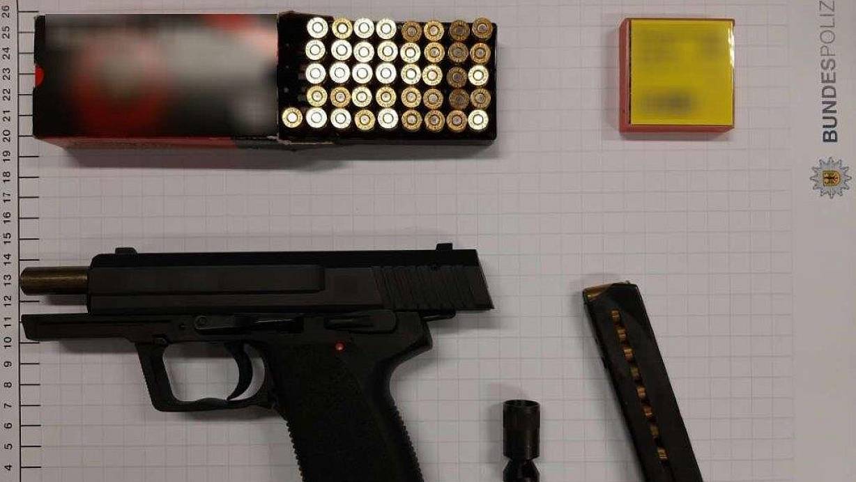 Das Foto der Bundespolizei: Es zeigt eine der beiden Pistolen und die dazugehörige Munition. | © Bundespolizei
