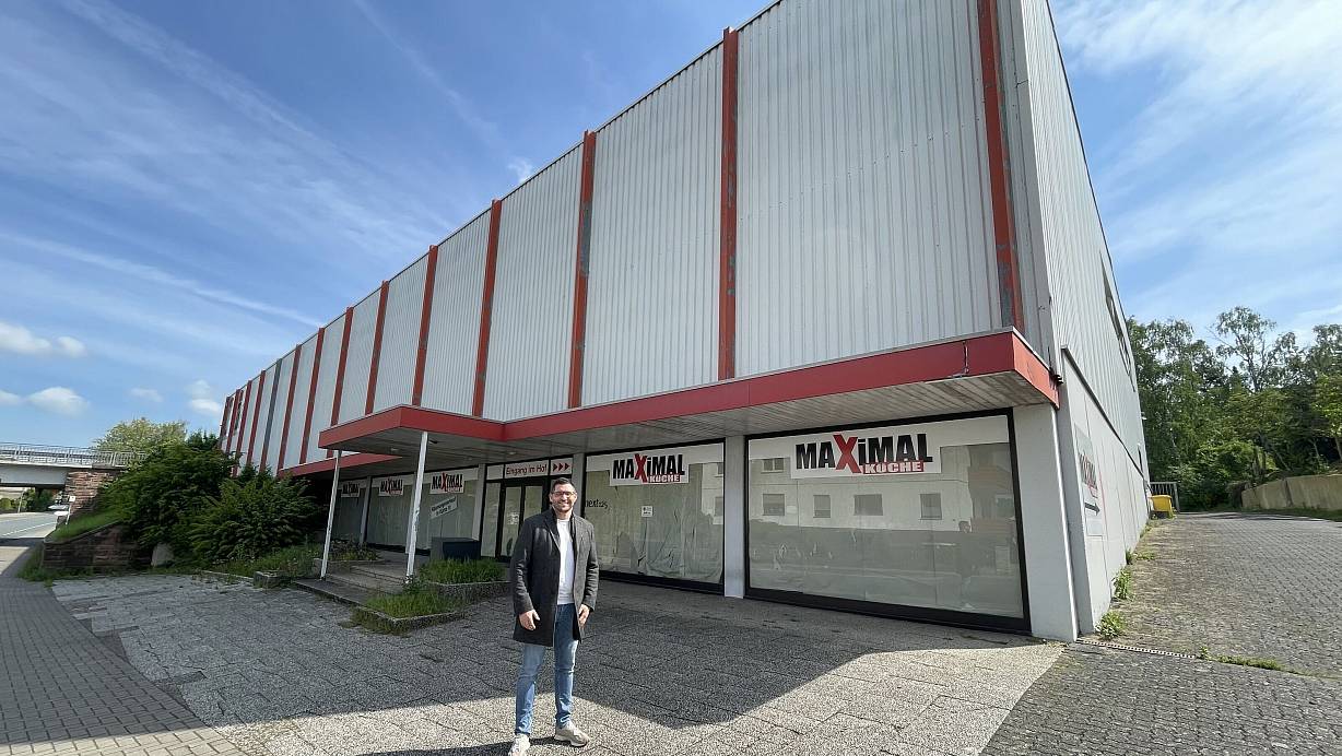 Patrick Welp, Hausleiter Möbel Akut, vor dem neuen Firmensitz an der Eimterstraße in Herford. Hier wird derzeit umgebaut. Ende des Jahres sollen rund 25 Mitarbeiter der Möbelhändlers von Bielefeld nach Herford ziehen. | © Natalie Gottwald