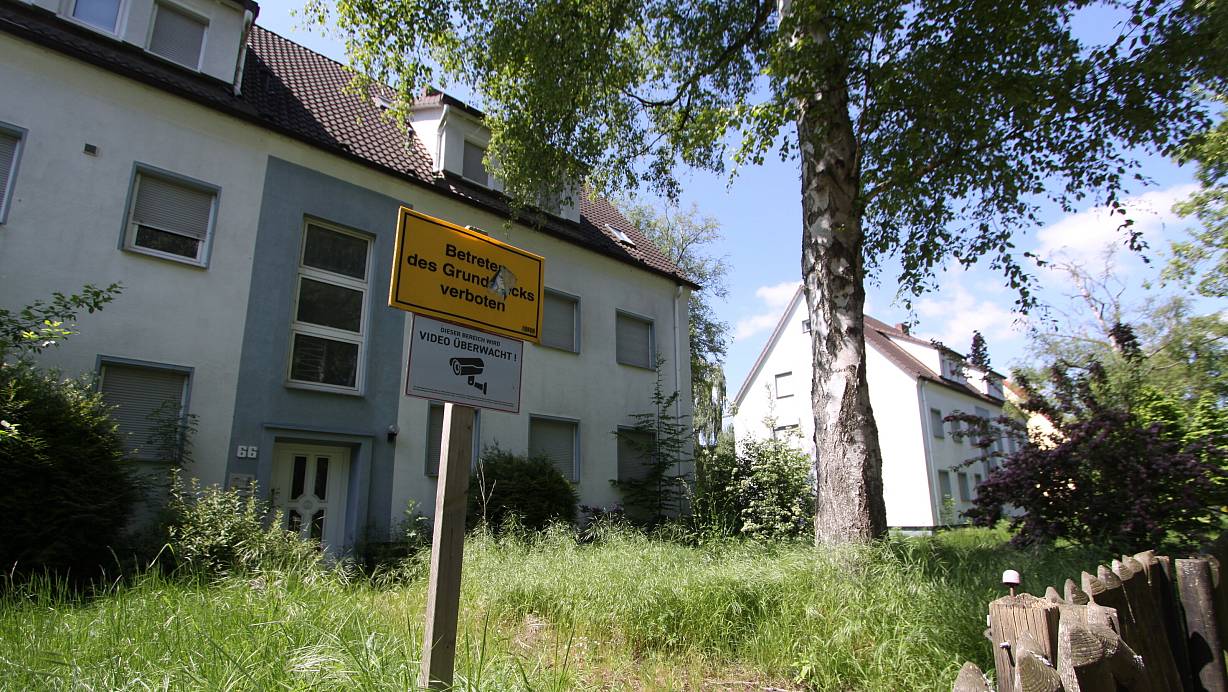 Die Jalousien sind heruntergelassen, im Garten wächst das Gras munter vor sich hin. Offenbar schon seit mehreren Jahren stehen die beiden Mehrfamilienhäuser in bester Lage am Weddigenufer leer. | © Björn Kenter