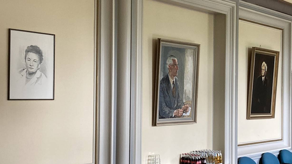 Ein Porträt von Frieda Nadig (l.) hängt im kleinen Sitzungssaal des Herforder Rathauses. Daneben die Herforder Herrmann Höpker-Aschoff, erster Präsident des Bundesverfassungsgerichts, sowie der Sozialdemokrat Carl Severing (v. l.). | © Matthias Bungeroth