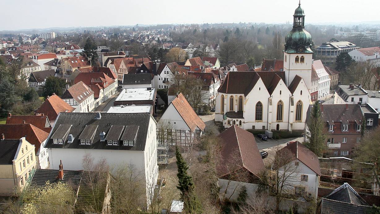 Der Janup mit der Jakobi-Kirche dahinter - gesehen aus dem Riesenrad zur Osterkirmes 2018. Links im Bild stehen das Carl-Severing-Haus und das Dohm-Hotel. Die Gebäude unten rechts sind inzwischen abgerissen. | © Frank-Michael Kiel-Steinkamp