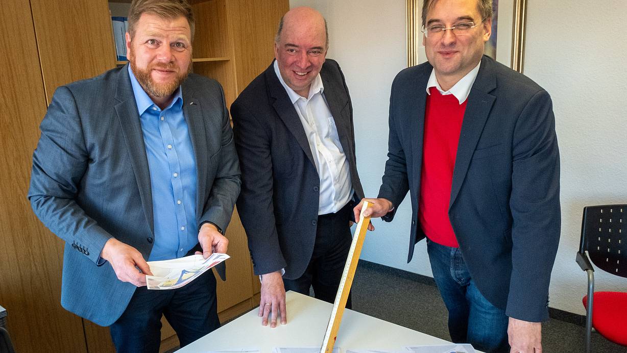 Der CDU-Stadtverbandsvorsitzende Jörg Haferkorn (Mitte), sein Stellvertreter Christoph Büker (l.) und der kulturpolitische Sprecher Andreas Gorsler stellten im Herbst vergangenen Jahres ihren nachgebesserten Vorschlag für ein OWL-Forum auf dem Janup vor. | © Ralf Bittner
