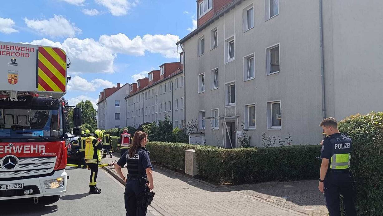 Bewohner des Herforder Mehrfamilienhauses hörten den Rauchmelder und alarmierten die Feuerwehr. Die kümmerte sich unter schwerem Atemschutz um die Löscharbeiten.