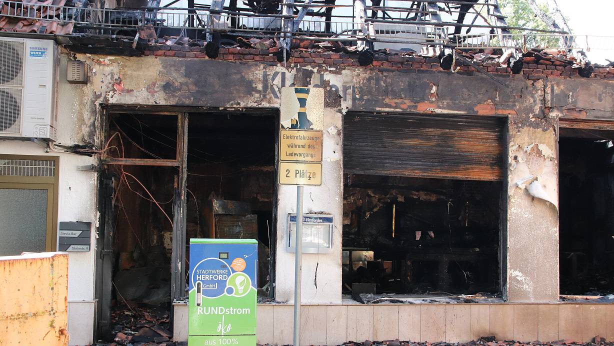 Die Stevia-Bar an der Steinstraße im Herforder Stadtzentrum wurde offenbar infolge einer Detonation durch einen Brand am vergangenen Sonntag zerstört. | © Alina Rullkötter