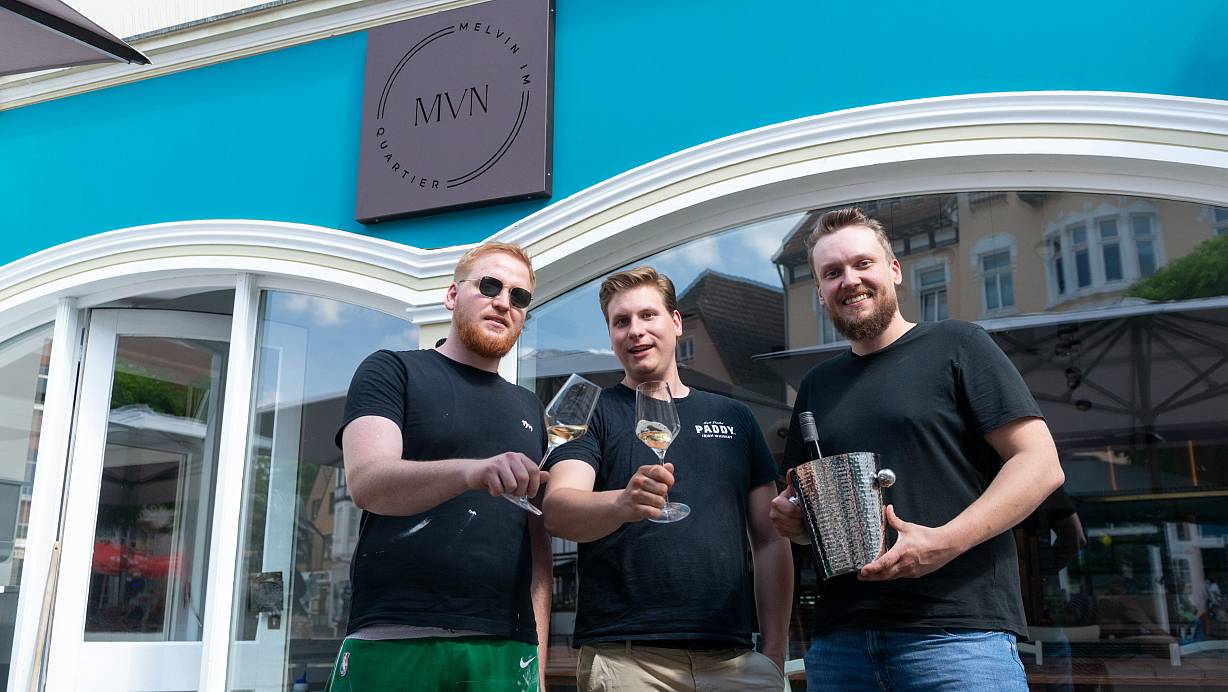 Die drei Restaurantchefs Niklas Meise (v. l.) , Vincent Klinge und Melvin Krömker eröffnen am Freitag, 9. August" ihr Restaurant in den Räuem der früheren Quartier Lounge. | © Ralf Bittner
