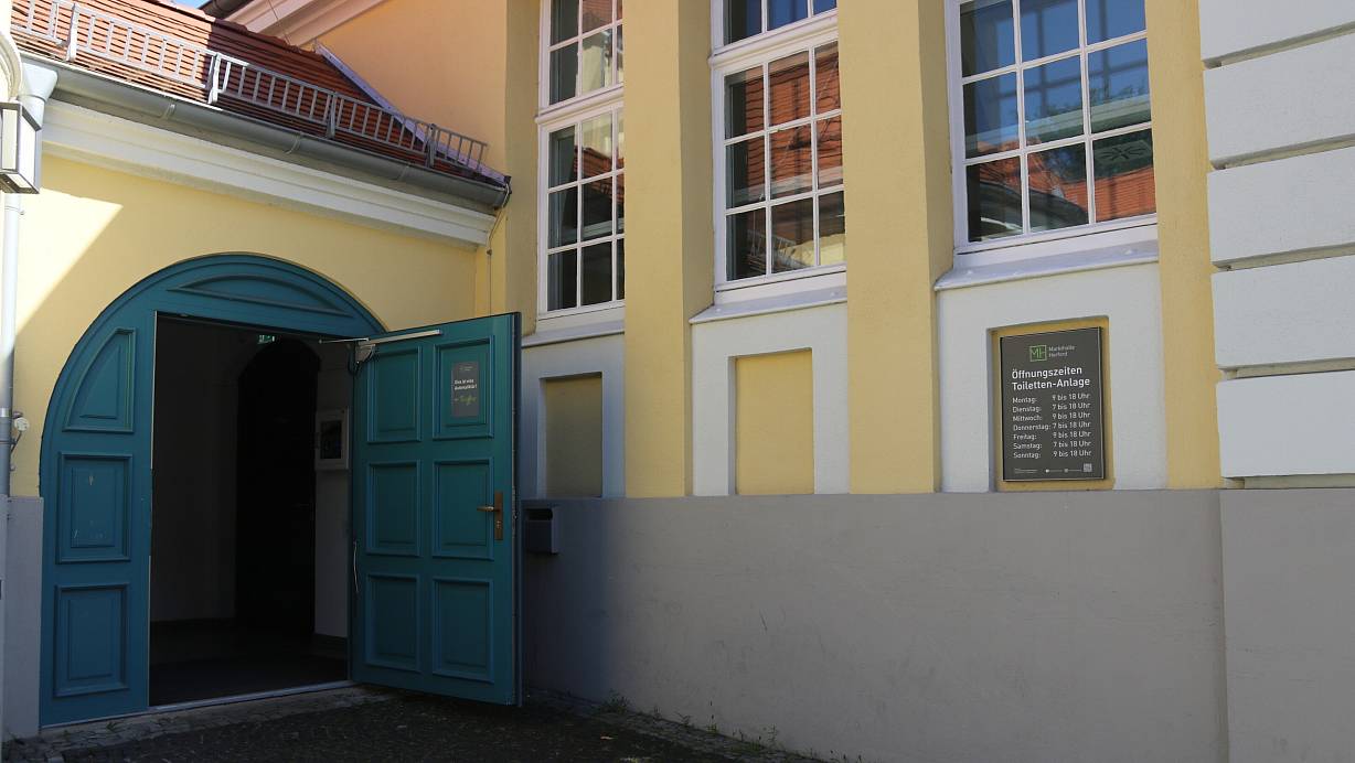 In der Toilettenanlage der Herforder Markthalle hat ein Marktbeschicker am frühen Samstagmorgen einen 46-jährigen Mann tot aufgefunden. Die Polizei schließt ein Fremdverschulden aus. | © Claus Frickemeier