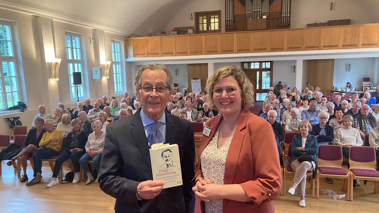 Franz Müntefering zusammen mit Anna-Lena Köhler von der evangelischen Erwachsenenbildung, die ihn eingeladen hatte. | © Jobst Lüdeking