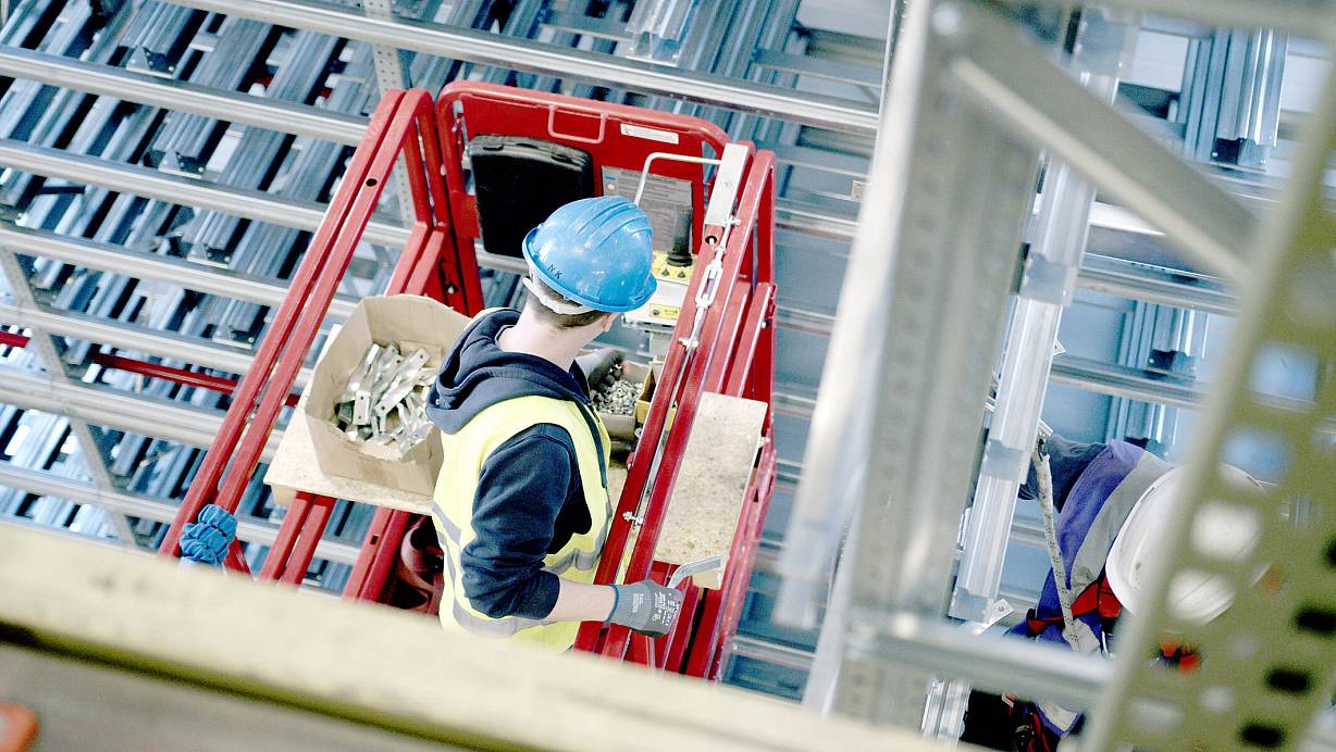 Im Herbst 2023 hatte die Firma Dresselhaus am Standort Herford ein neues, aufwendig modernisiertes Logistikzentrum eröffnet. Das Foto zeigt Arbeiten am automatisierten Behälter-Shuttle-Regal. | © Joseph Dresselhaus GmbH & Co. KG