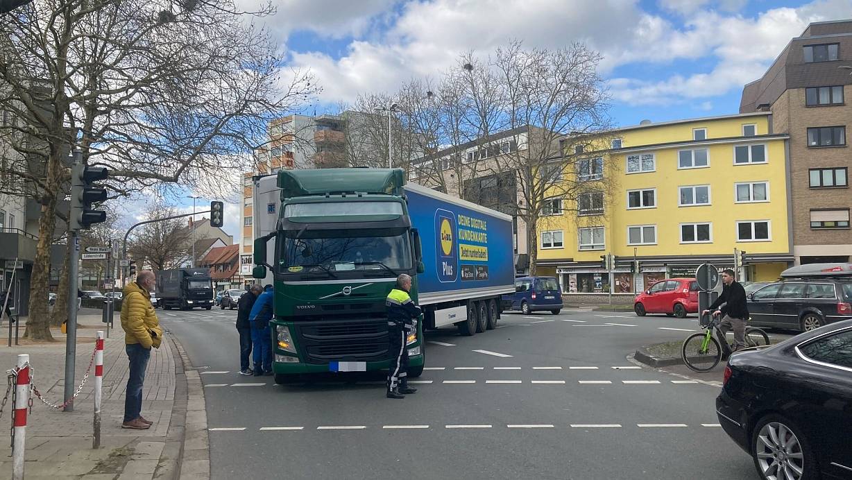 Beim Abbiegen gab es ein technisches Problem, das dazu führte, dass der Lkw weder vor noch zurück fahren konnte. Ein ungewöhnlicher Pannendienst half dann aber.