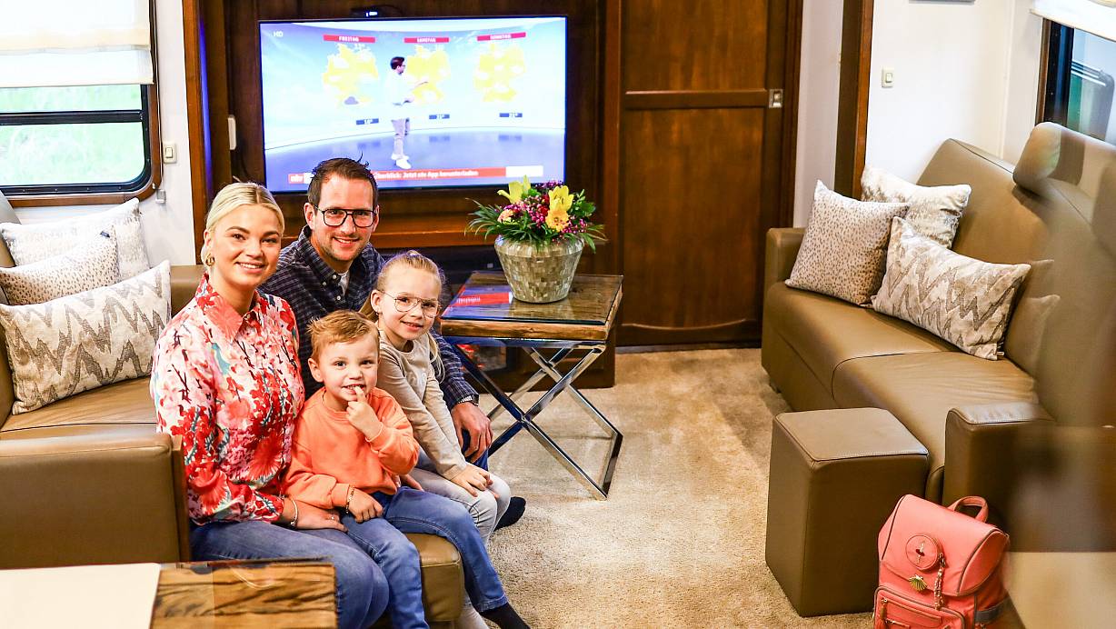 In ihrem XXL-Mobilheim fühlen sich Vater Ronny Cornelius, Mutter Jessica, Tochter Chloé und Sohnemann Ronn junior richtig wohl. Kein Wunder: Der große Wohnwagen ist mit allem erdenlichen Komfort ausgestattet. | © Daniel Salmon