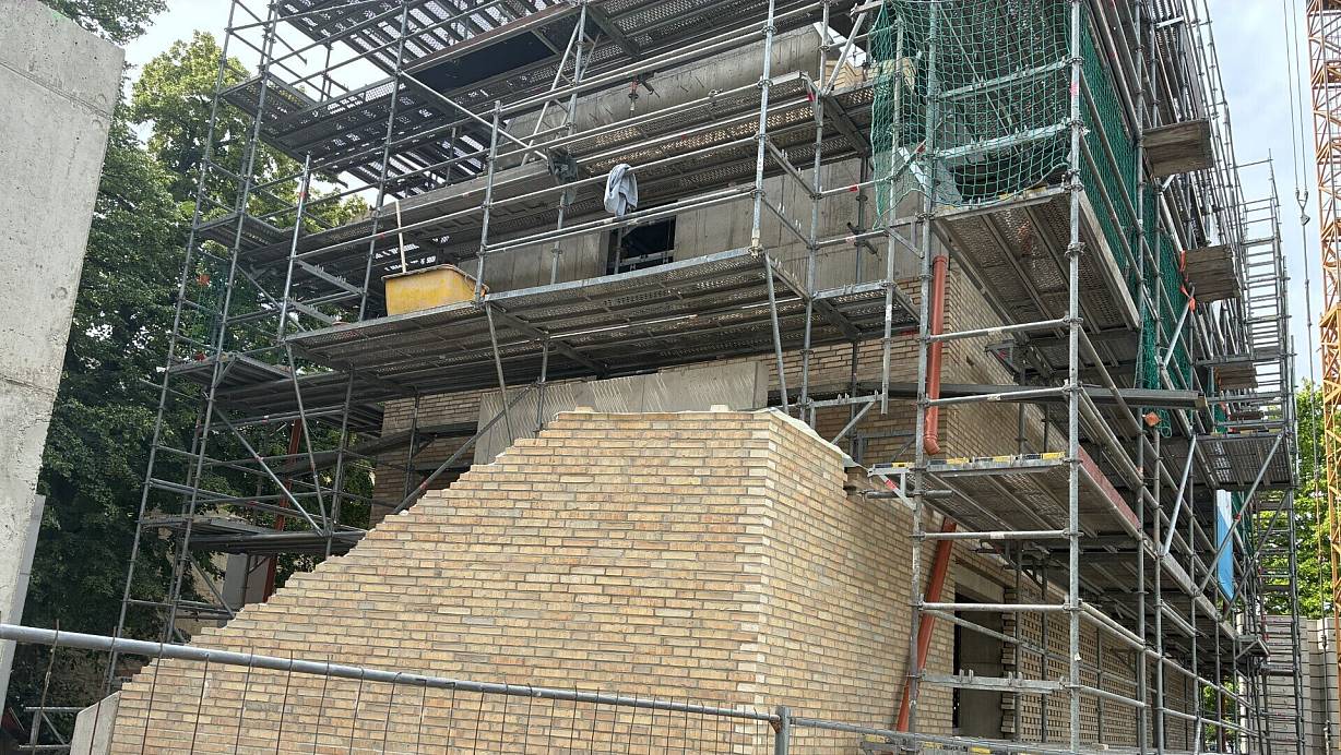 Auf die Frage, wann die Fassade des großen AFaM-Gebäudes fertig werde, sagt die Stadt: „Aktuell stehen noch die Lieferungen der innen liegenden Stahltreppen an, die im kommenden Monat erfolgen sollen. So lange bleibt die Fassade an zwei Stellen geöffnet, um die Montage zu ermöglichen.“ Eine vollständige Fertigstellung der Fassade sei daher für Mitte Juli vorgesehen.