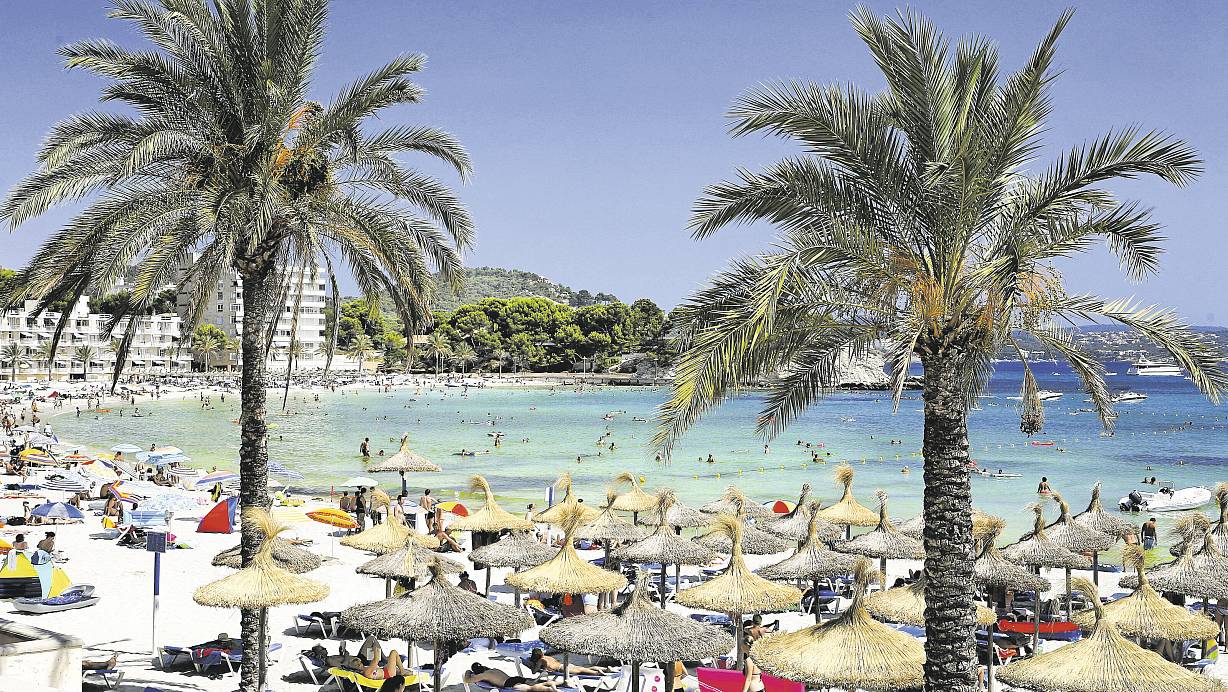 Strandurlaub, hier in der Badebucht bei Paguera auf der Insel Mallorca, ist nach wie vor beliebt. Doch die Kosten hierfür steigen kräftig. Urlauber aus Herford drehen vor der Buchung deshalb offenbar jeden Euro zweimal um. | © picture alliance / dpa