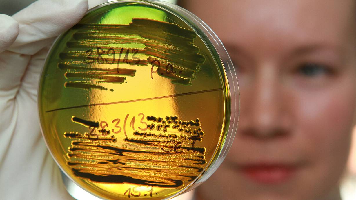 Eine Laborantin im Robert Koch Institut vergleicht eine biochemische Testung zur Unterscheidung von verschiedenen Arten von Durchfallerregern. | © Matthias Bein/picture alliance/ZB