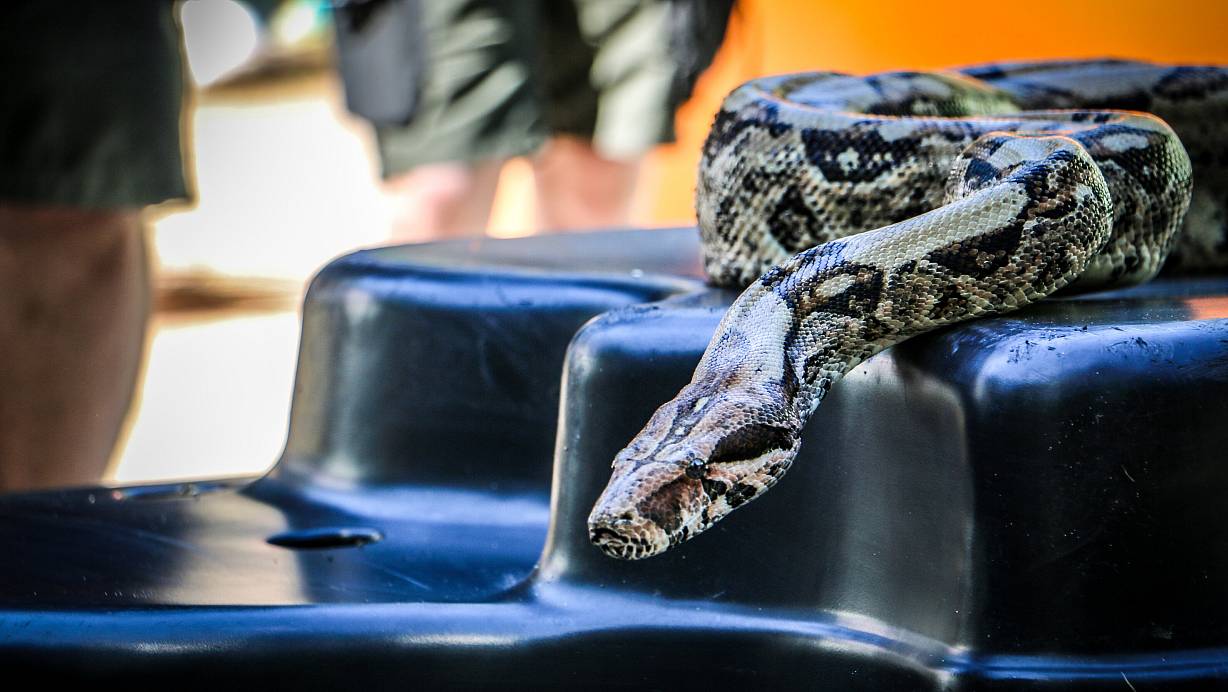 Nach der Einfangaktion ist die exotische Schlange zunächst im Tierpark untergebracht. Doch wem gehört das 2,5 Meter lange Reptil überhaupt?