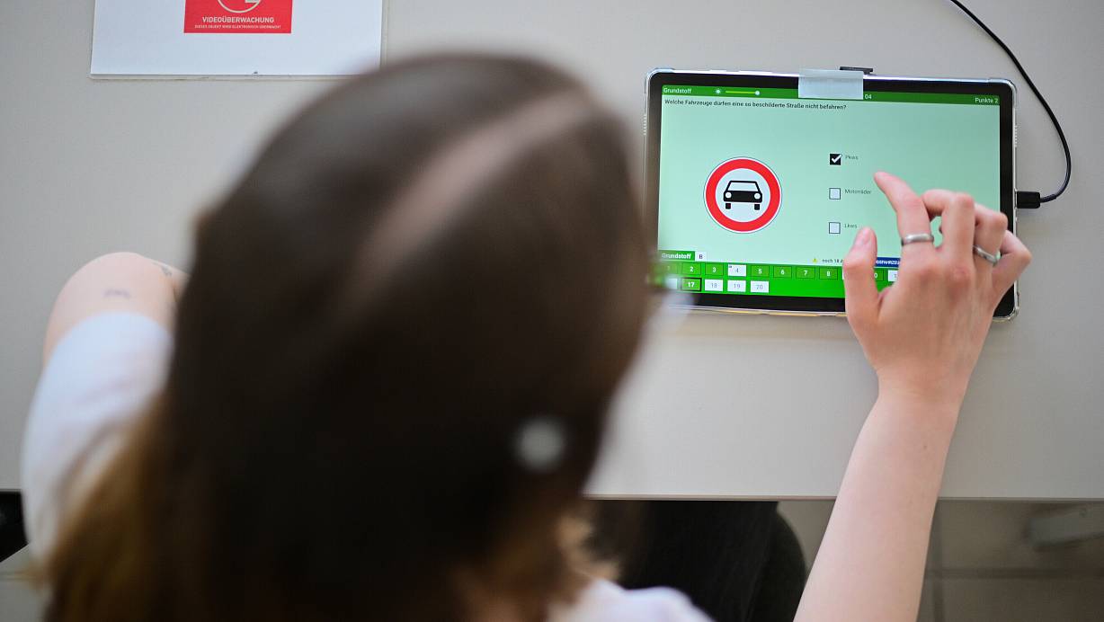 Eine Frau beantwortet eine Frage der theoretischen Prüfung des Führerscheins. (Gestellte Szene). Die Fahrschulen im Kreis Herford zeigen sich verärgert über die Tatsache, dass durch einen Streik am Donnerstag beim TüV Nord Hunderte Fahrprüfungen ausfallen. | © picture alliance/dpa