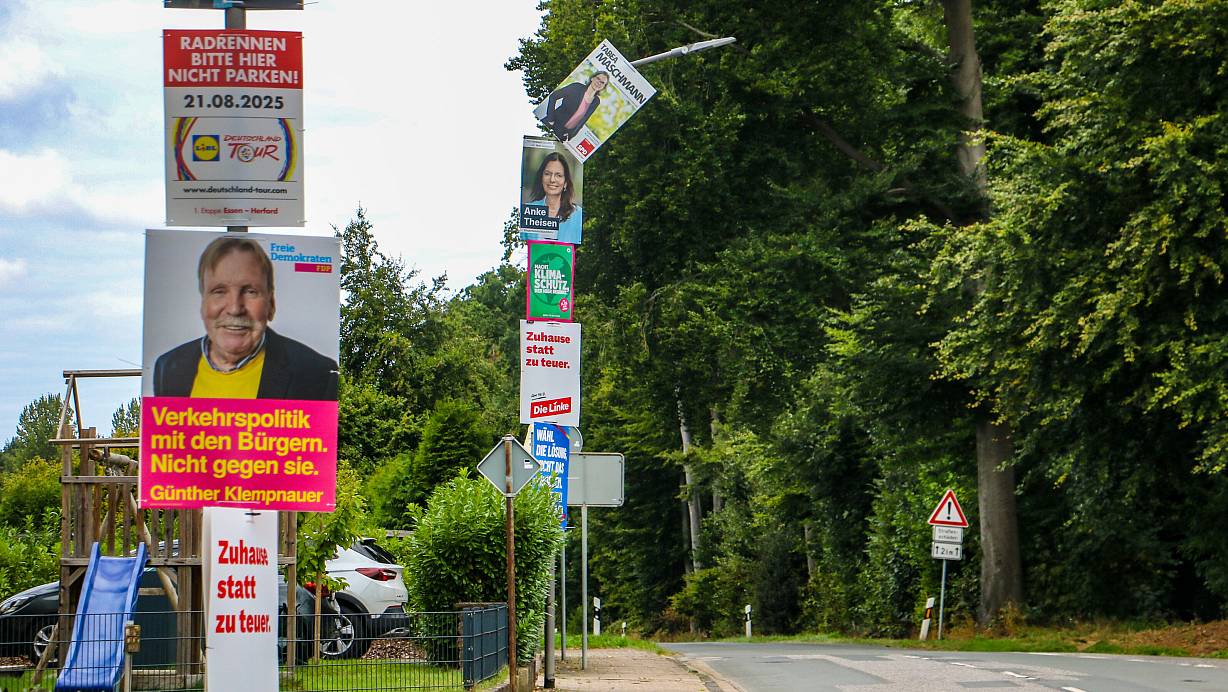 Der Laternenmast am Elverdisser Ortseingang ist mit Wahlwerbung verschiedener Parteien regelrecht überfrachtet. | © Daniel Salmon