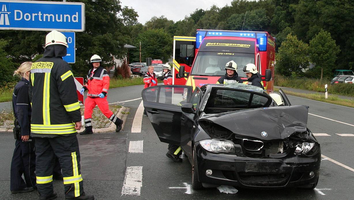 Verletzt: Der Fahrer dieses BMWs ist nach dem Unfall auf der Vlothoer Straße in Herford im Jahr 2016 ins Krankenhaus gebracht werden. | © Archiv: Walter Dollendorf