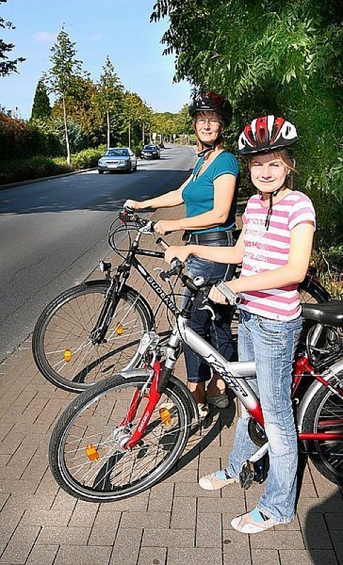 Schülerin Anneke Witte mit ihrer Mutter Cornelia Witte an der Stelle an der Vlothoer Straße, an der sie zu Fall gekommen war. - © FOTO: FRANK-MICHAEL KIEL-STEINKAMP
